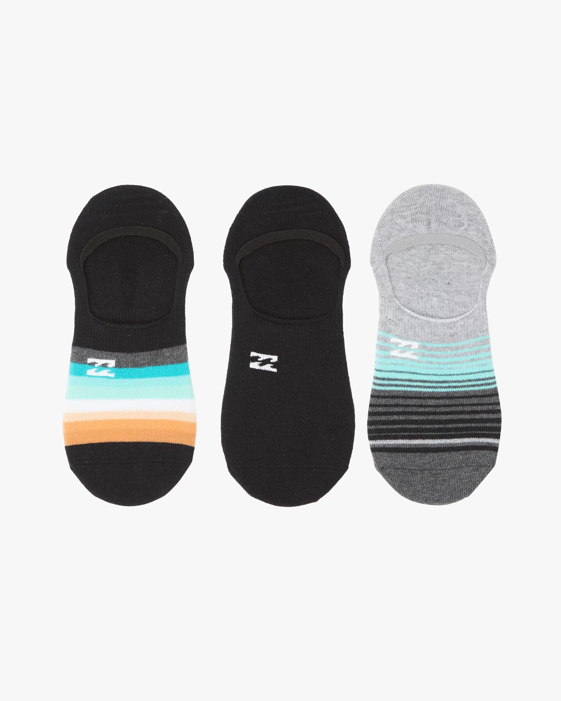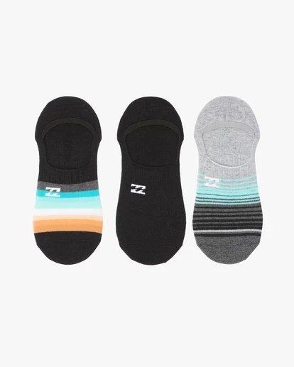Sleek style meets bold design in the Billabong No-Show Stripe Socks. Featuring woven jacquard stripe artwork with embroidered logo at the top, these men’s no-show socks are made from recycled polyester blended fabric with stretch for a comfortable fit and feel you can wear all day. Built with added arch support, these men’s socks are offered in a 3-pack, so you can mix and match your vibe. Fits men’s sizes 7-11.