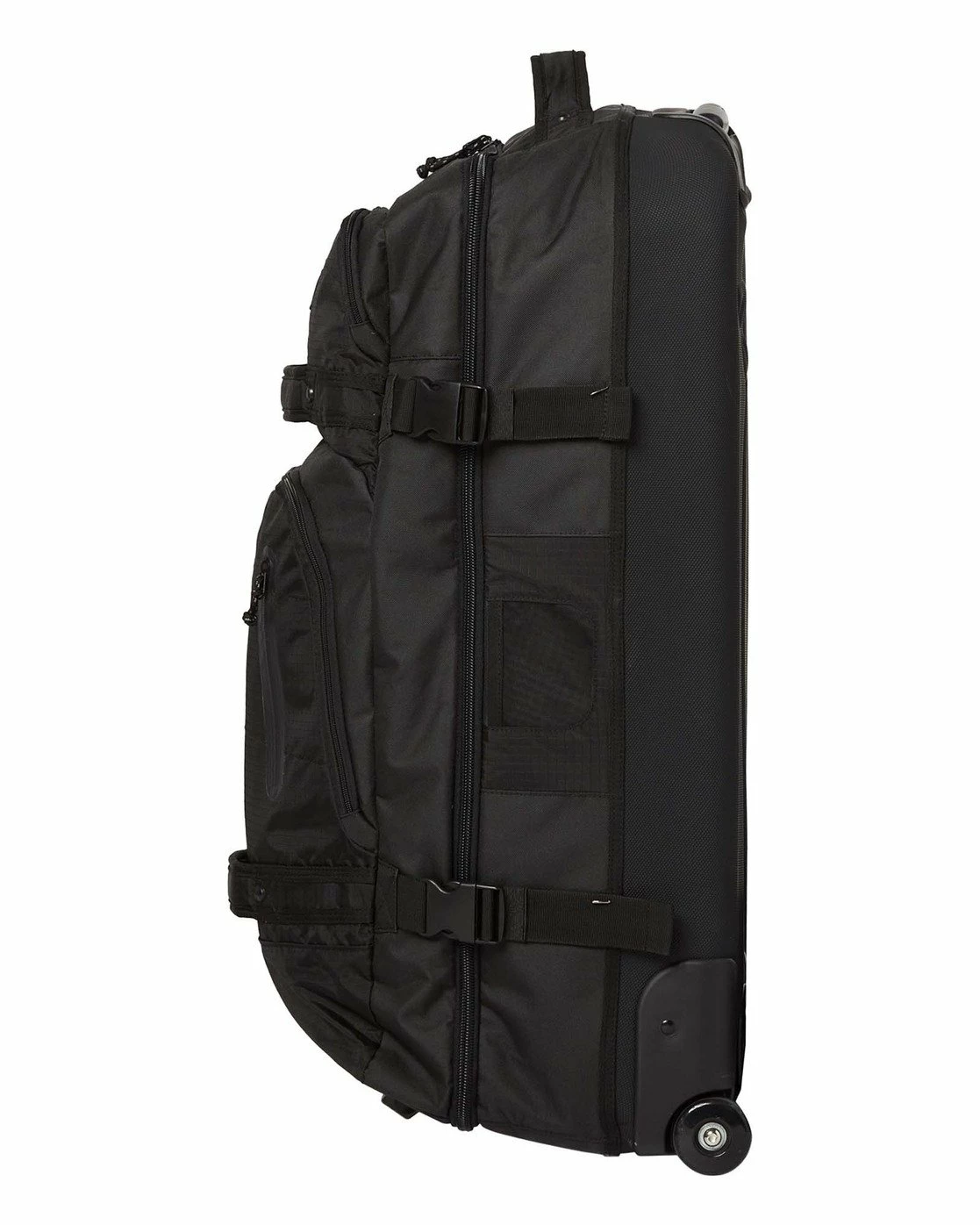 Travel well with the large 110 Liter Booster Wheeled Travel bag by Billabong. Constructed from tough 600D polyester with a Molded EVA base, the roller bag has an axle guard with durable trolley system and a telescopic handle for easy transport. The large main compartment with dividers is complimented by an external wet and dry pocket to keep the funk away. Compression straps lock things in place.