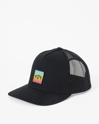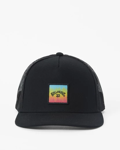 Find permanent shade in the Billabong Stacked Trucker Hat, made from cool cotton twill in a trucker style so your skull can breathe. Featuring 5-panel fit construction and an adjustable snapback closure for a personalized fit, this wardrobe essential is finished off with a custom print and embroidered patch on the front panel for vibes. Demi curve brim provides added sun protection. Flag label on back.